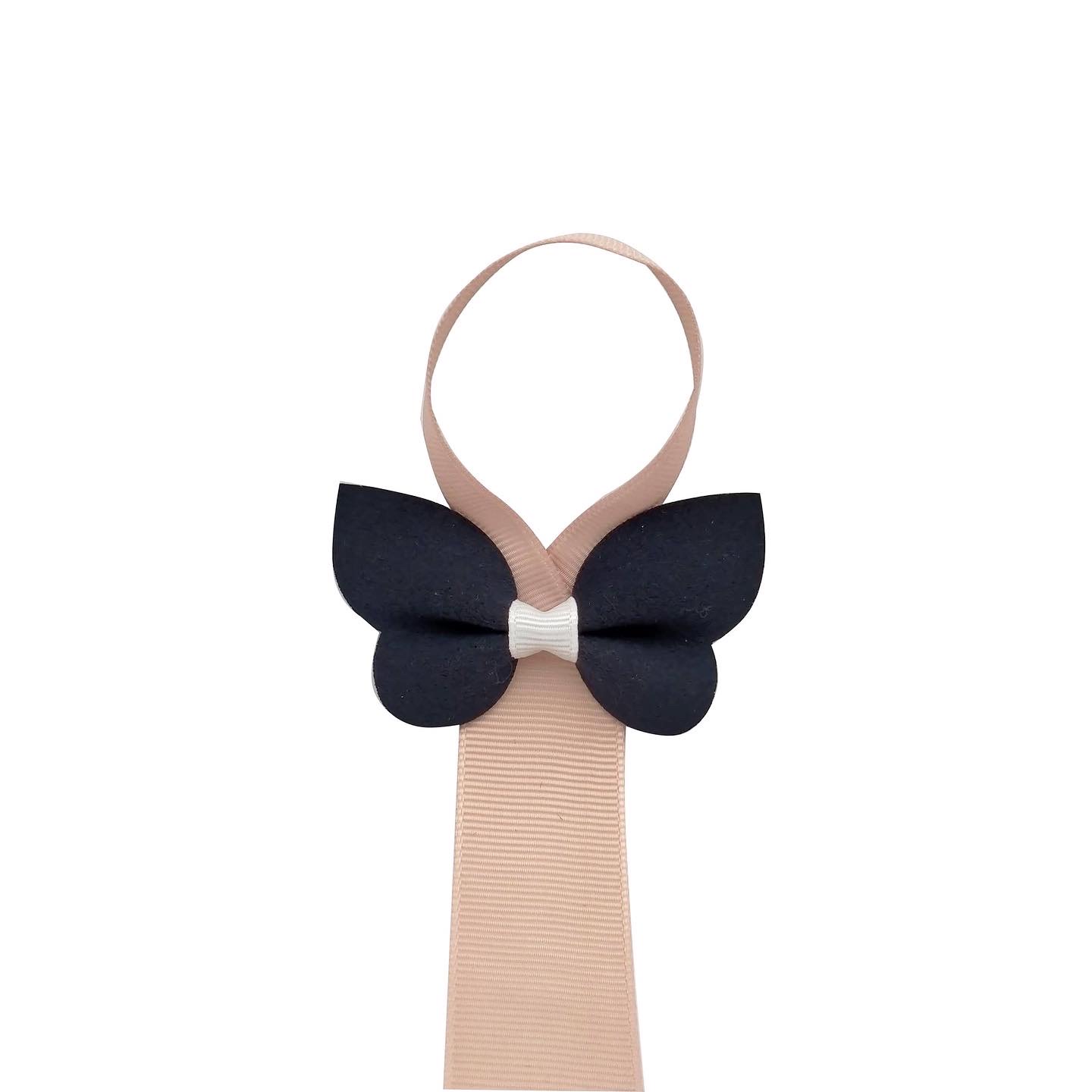 Petite Olivias hårrosetts-förvaring är ett rosettband där du enkelt förvarar dina hårrosetter. Champagne färgat band, med 2 rosetter i navy + Petite Olivias logga.